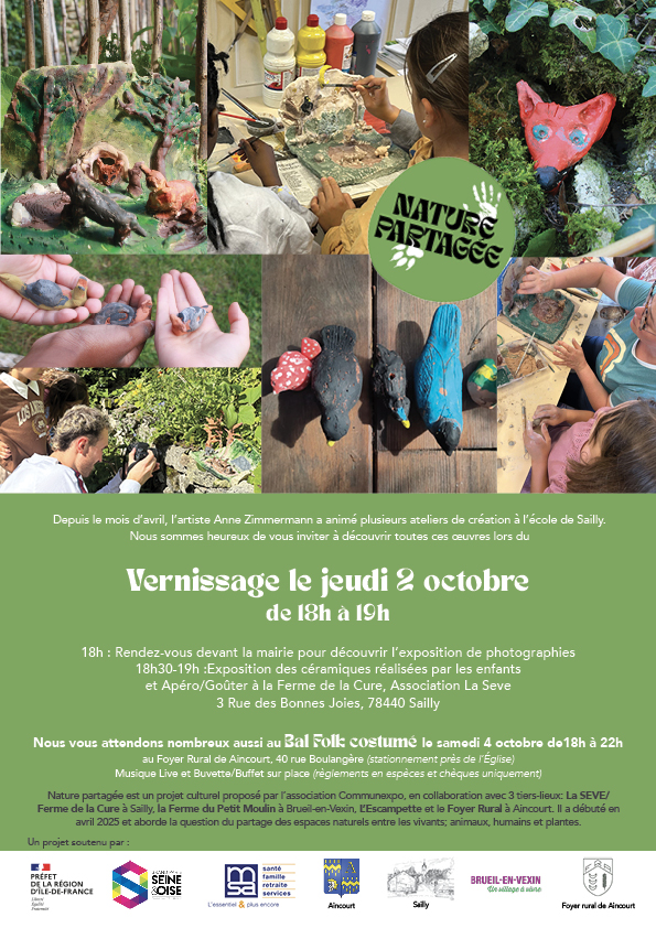 🤝 Projet réalisé par l’association Communexpo, avec le soutien de la DRAC Ile-de-France, la Communauté Urbaine GPSEO, la MSA, le foyer rural de Aincourt, les villages d’Aincourt, Sailly et Brueil-en-Vexin, l’Escampette et la Ferme du Petit Moulin
